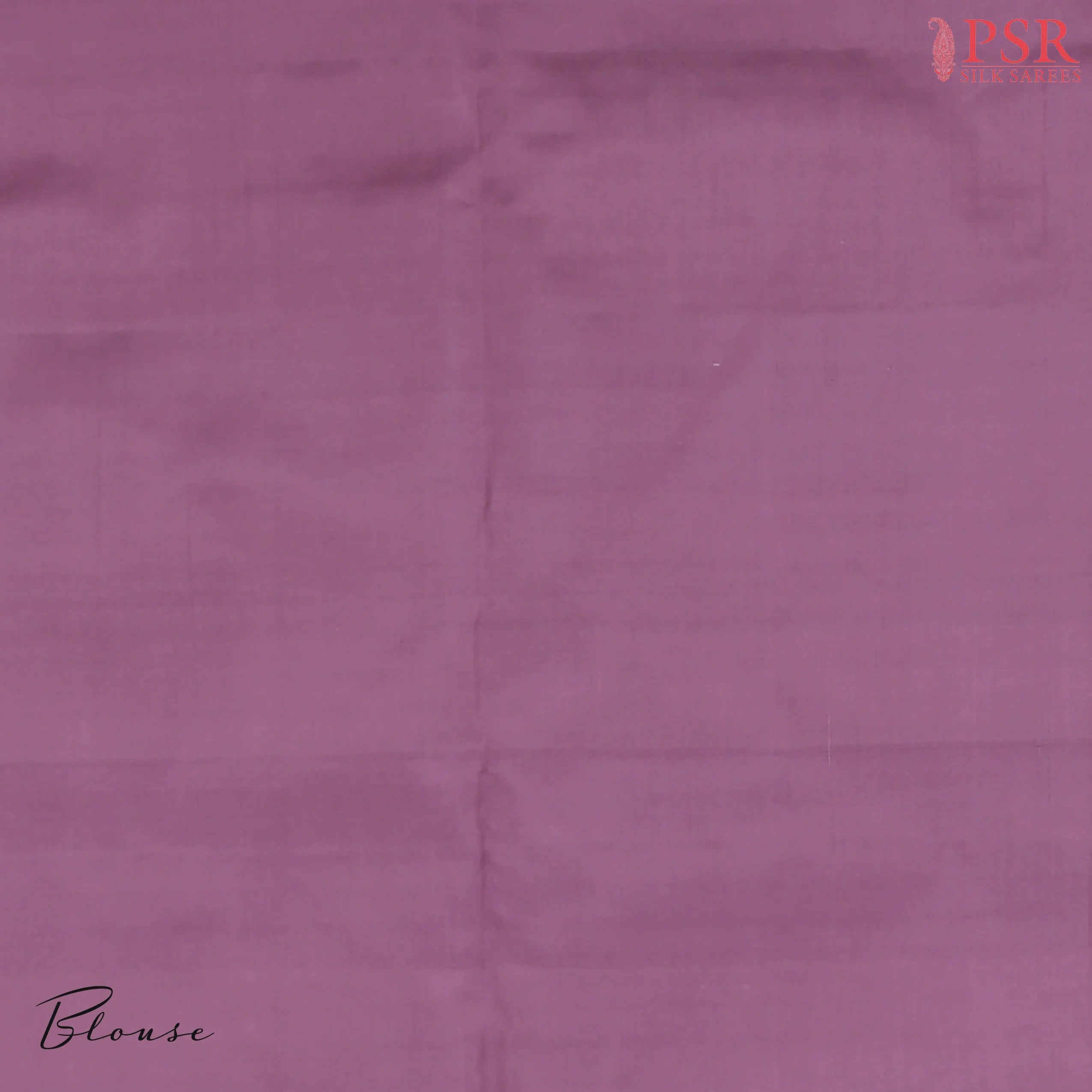 The saree showcases beautifully woven silver zari designer stripes accented adding a modern touch to its timeless silk elegance. The Onion Pink pallu shimmers with rich traditional zari work, while the plain Onion Pink blouse and border complete its refined appeal.