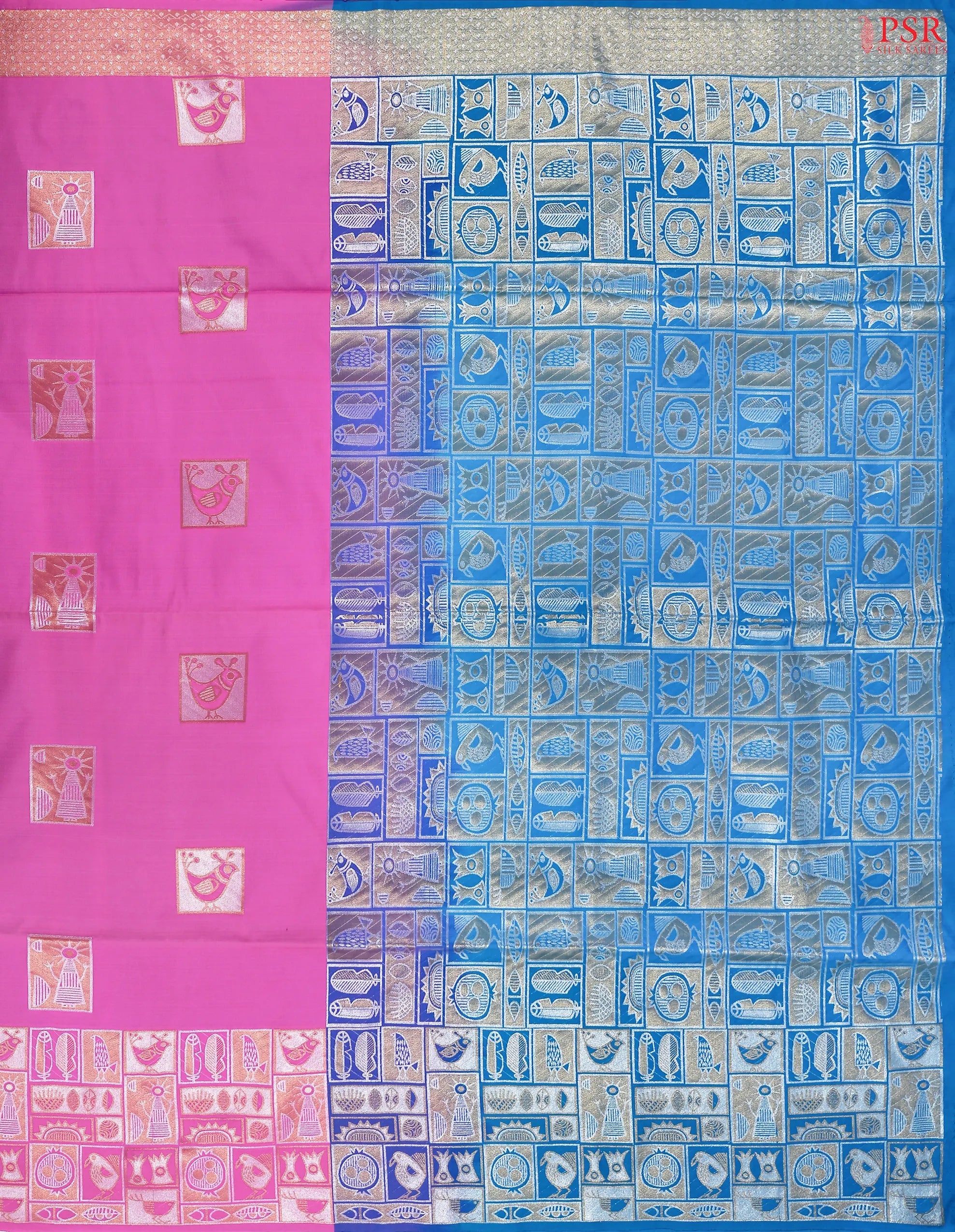 PSR Silk Sarees presents a Taffy Pink Soft Art Silk saree with combination of Peacock Blue color.