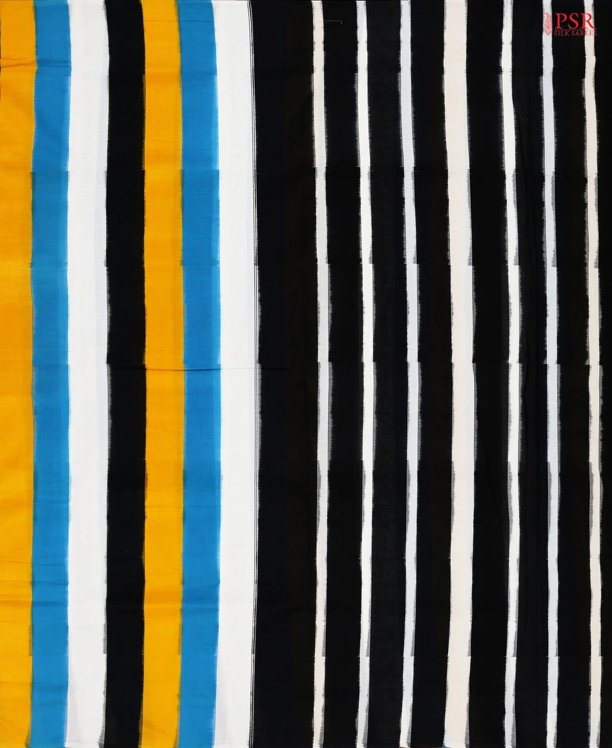 PSR Silk Sarees presents a Quadricolor (Mustard Yellow,Cerulean Blue,Off White & Black) colored Ikkat cotton saree.