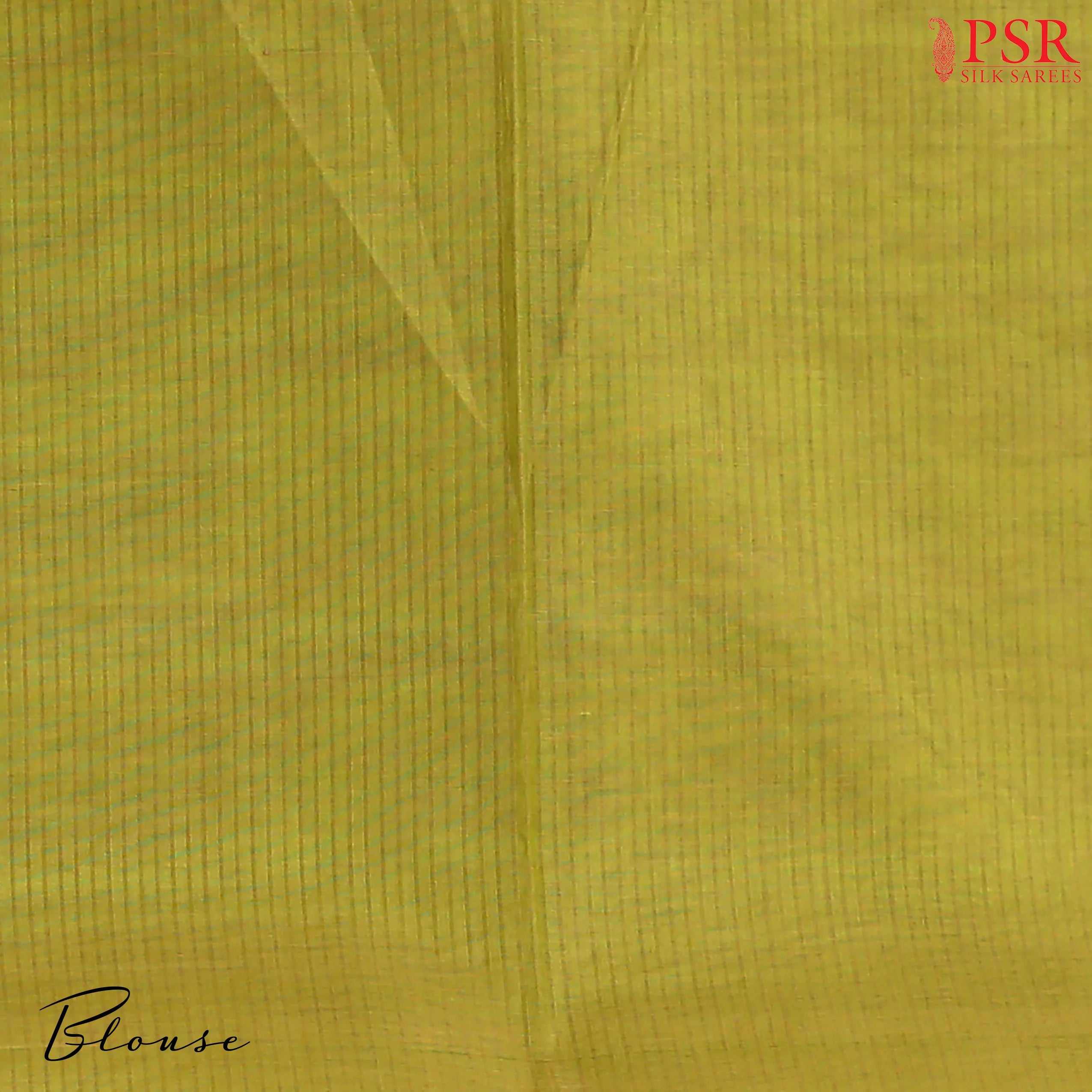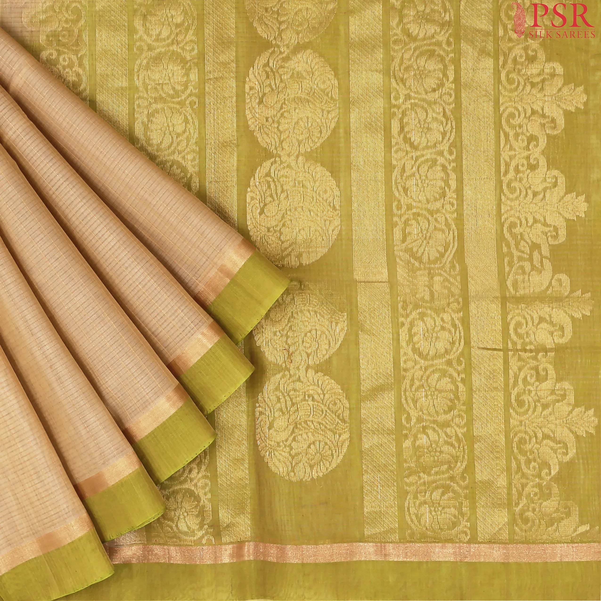 PSR Silk Sarees presents a Tussar Beige colored Silk Cotton saree with contrasting combination of Chartreuse Green color.
